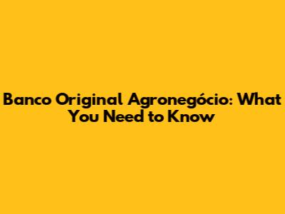 Banco Original Agronegócio: What You Need To Know