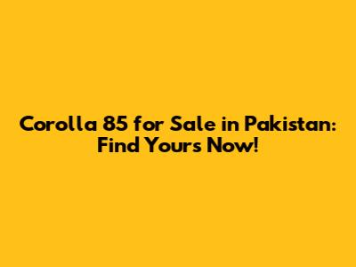 Corolla 85 For Sale In Pakistan: Find Yours Now!