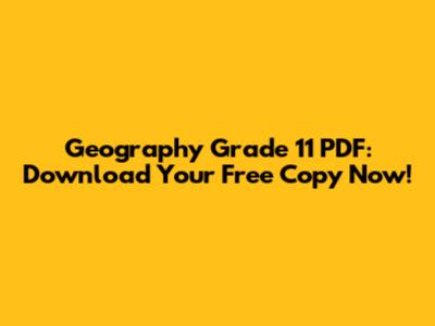 Geography Grade 11 PDF: Download Your Free Copy Now!