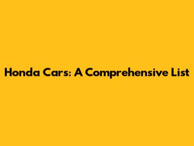 Honda Cars: A Comprehensive List