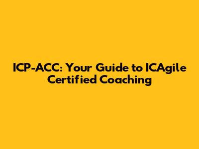 • The ICAgile Certified Professional in Agile Coaching (ICP-ACC) is designed for those looking to enhance their Agile coaching skills and make a real impact on teams and organizations.