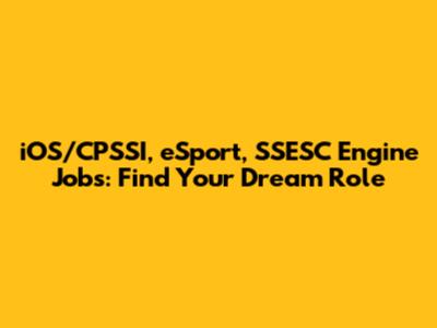 IOS/CPSSI, ESport, SSESC Engine Jobs: Find Your Dream Role