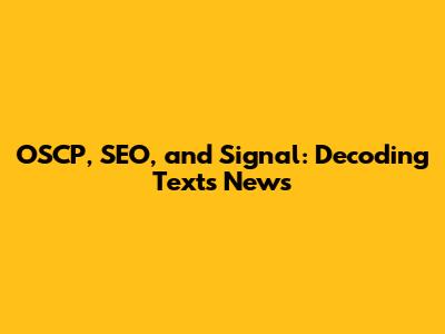 OSCP, SEO, And Signal: Decoding Texts News