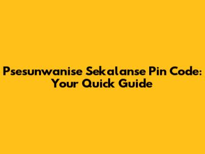 Psesunwanise Sekalanse Pin Code: Your Quick Guide