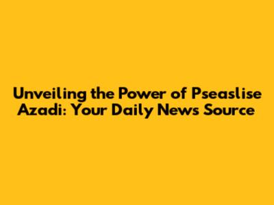 Unveiling The Power Of Pseaslise Azadi: Your Daily News Source